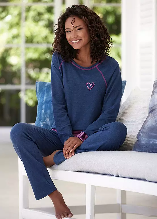 Vivance Dreams Pyjamas – perfect for a good night’s sleep! This set includes a pyjama top with long raglan sleeves, a crew neck and a neon heart print on the chest. The trousers have an elasticated drawstring waistband and side pockets. Crafted from a soft single jersey quality made from a cotton blend, this pyjama set is sure to keep you snug and comfy all night. Get ready for some sweet dreams with Vivance Dreams Pyjamas! Pyjama top with long raglan sleeves, a crew neck and a neon heart print on the chest. Trousers with elasticated drawstring waistband and side pockets.