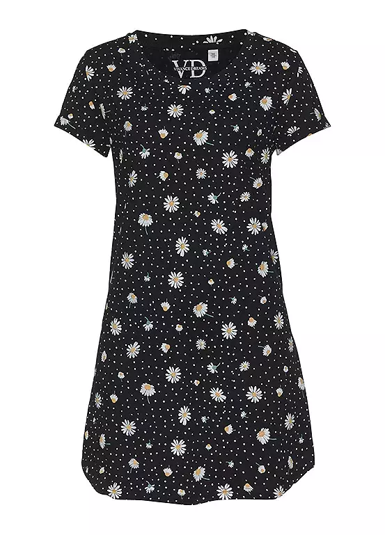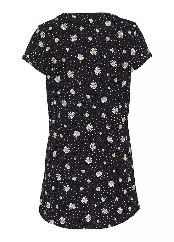 Nightgown in a daisy print with short sleeves, dropped shoulders and a turn-up hem. Made of comfortable cotton, which gives you excellent wearing comfort thanks to its soft single jersey quality. Soft single jersey quality made from pure cotton .