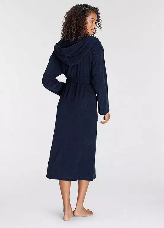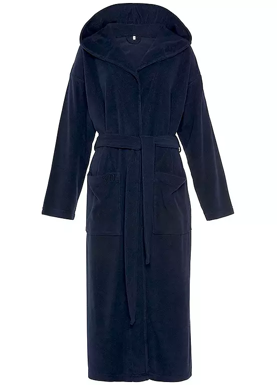 This cosy bathrobe is made from a soft cotton blend that feels great against the skin. It’s hooded and features a detachable tie belt, as well as logo embroidery on the patch pocket. Hooded and detachable tie belt at waist. With logo embroidery on the patch pocket.