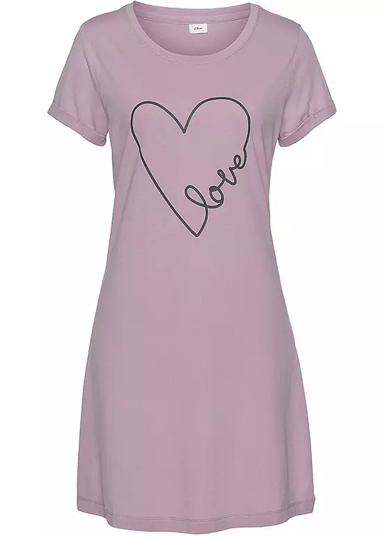 A long nightie by Vivance Dreams in a comfortable fit with a round neckline and short, rolled-up sleeves. In single jersey made from a cotton blend, it features a heart print on the front. Long nightie with heart print. With a round neckline & turn-ups at the sleeve hems. Machine washable. 50% Cotton, 50% Viscose.