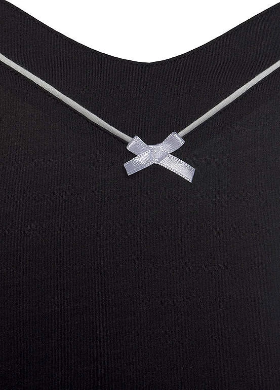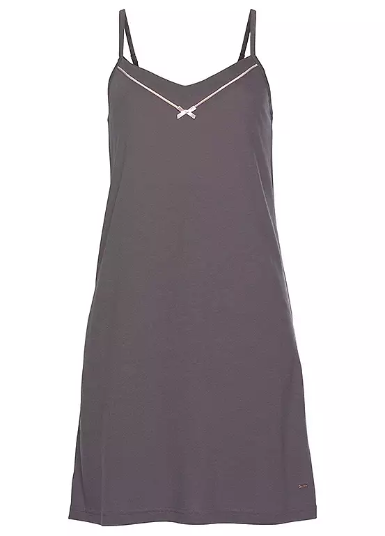An elegant negligee with contrasting piping on the v-neckline and adjustable straps for a perfect fit. Finished in a soft single jersey fabric. Adjustable straps for a perfect fit.