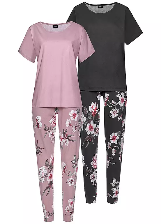 These pyjamas come in a practical 2-pack. In a floral all-over pattern with short sleeves and a classic round neckline. Plus a stretch drawstring waistband and side pockets.