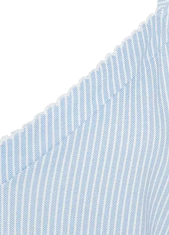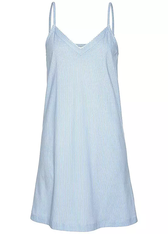 Make a fashion statement with this finely patterned negligee. Its in an A-line fit, with adjustable spaghetti straps, a V-neck and a playful crocheted edge.