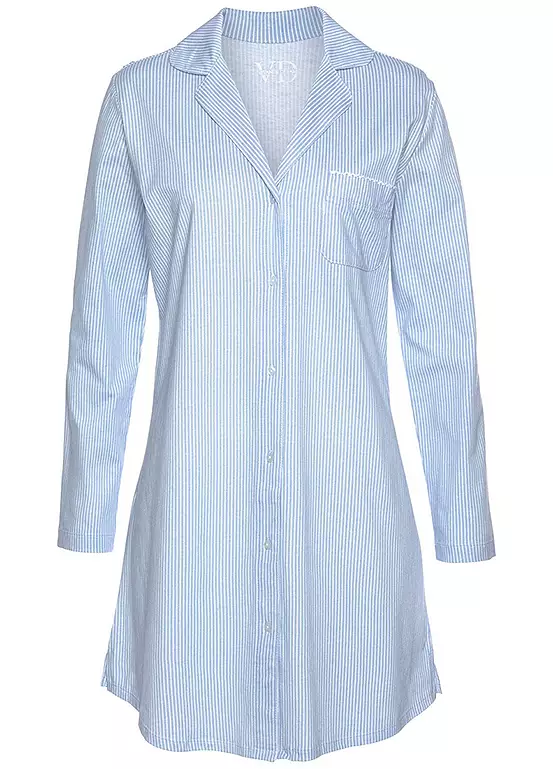 Fashionistas watch out! This casual nightie features a subtle all-over pattern, alongside a lapel collar full button placket and chest pocket. Finished with slits and a rounded hem.
