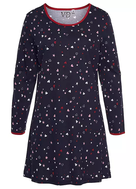 Short nightgown in an all-over floral print, made from soft single jersey quality cotton. Designed with a contrasting finish at the round neckline. Soft single jersey quality made from cotton.