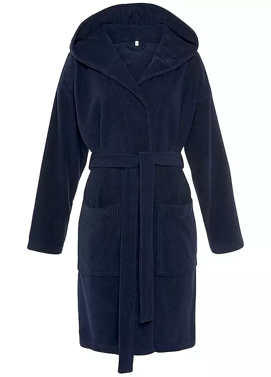 This cosy bathrobe is made from a soft cotton blend that feels great against the skin. It’s hooded and features a detachable tie belt, as well as logo embroidery on the patch pocket. Hooded and detachable tie belt at waist. With logo embroidery on the patch pocket.