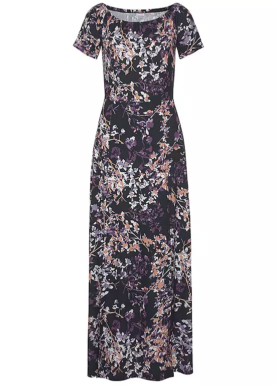 A maxi dress by Vivance in an all-over floral print featuring a Bardot neckline, short sleeves and hem slits at the front of the skirt part.