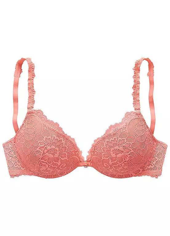Check out the feminine push-up bra with floral lace. It features a detachable, extravagantly decorated jewellery straps design. Also featuring Individually adjustable straps and back closure. Floral lace. Detachable. Removable cushions. Floral lace. Detachable. Individually adjustable straps. 90% Polyamide, 10% Elastane.