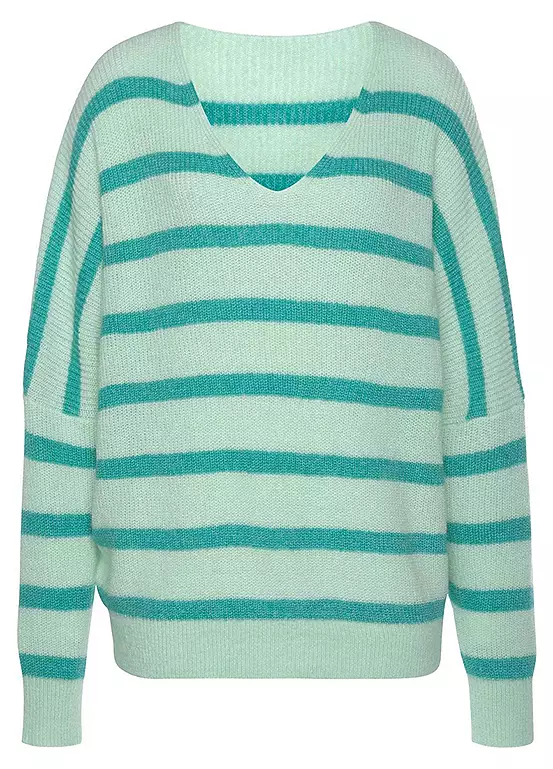 A fashionable jumper by Vivance with a deep v-neckline and a straight hem. It comes in an oversized fit with long sleeves and stylish stripes.