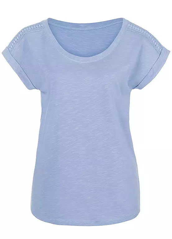 Fashionable t-shirt in a 2-pack by Vivance. With a delicate crochet insert on the shoulder. Capped sleeves with turned-up hem. Soft, slightly structured cotton quality. Pack of 2. Capped sleeves. 100% Cotton.