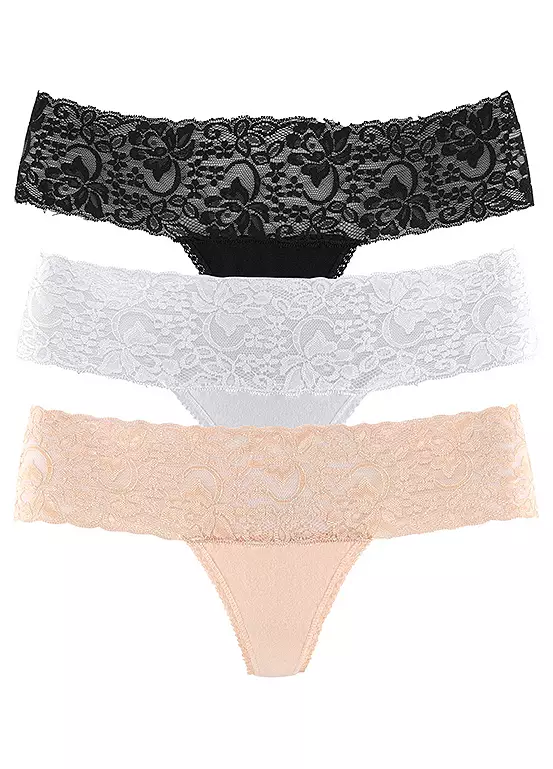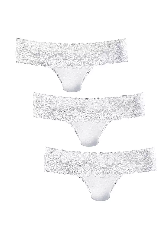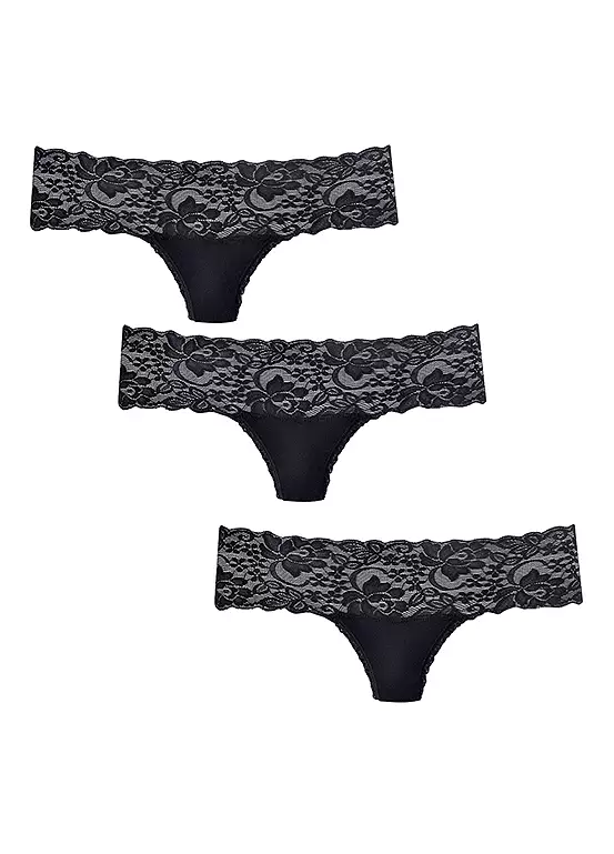 In a pack of three, these gorgeous basic Brazilian thongs are a sexy little piece which you’ll be glad to have multiple pairs of! The lace around the leg is an alluring feature which will keep you feeling confident throughout the day.