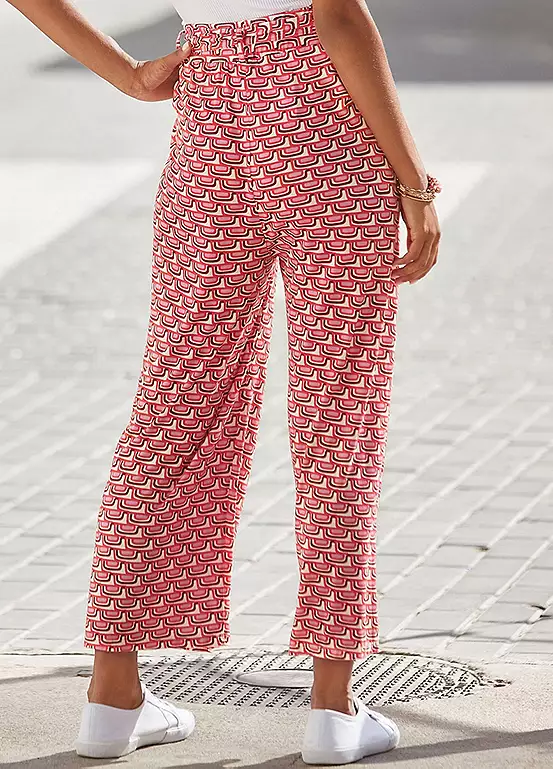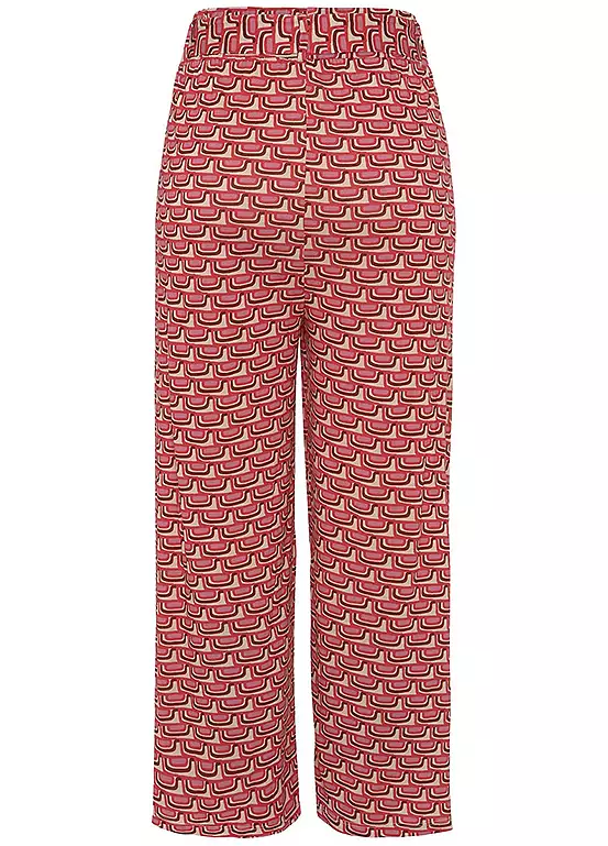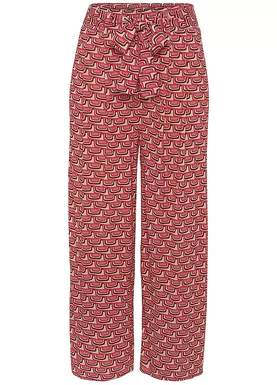 Comfortable culottes with an all-over patterned print and a wide cut with a tie at the waistband. Can be combined in many ways. Each piece is unique.