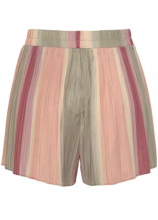Stylish summer shorts with a high waist and a wide hem. In a relaxed fit with a subtle shiny, pleated fabric. Wide hem. High waist.